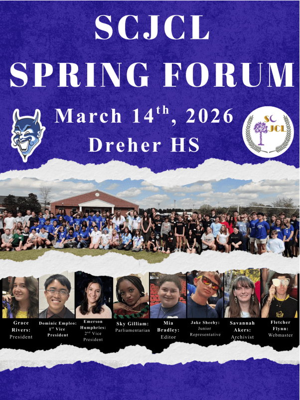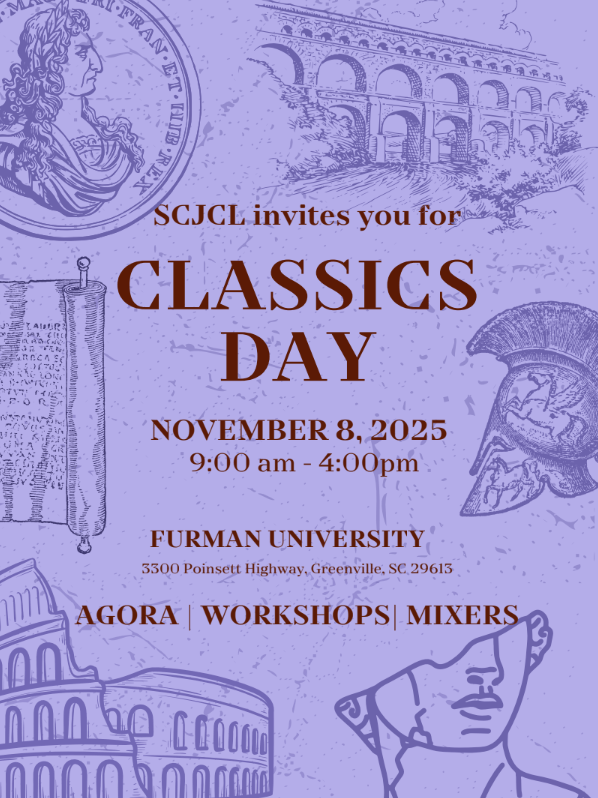 Spring Forum: Saturday, March 14th: 8am-4pm @Dreher HS Classics Day: Saturday, November 8th: 9am-4pm @Furman University